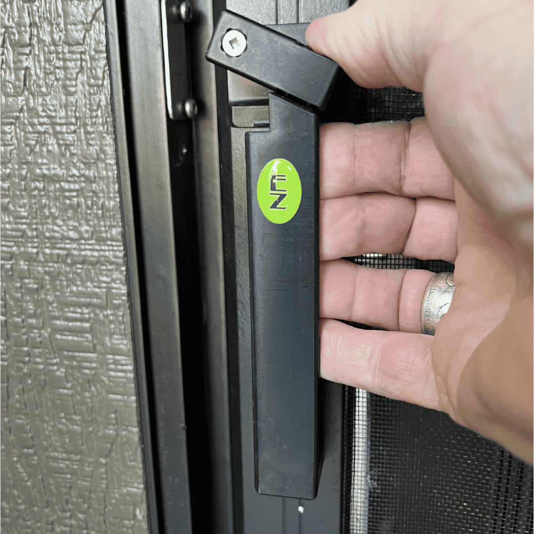The EZ Handle is a high-quality retractable screen door handle designed to fit both new and existing vanishing screen doors, making opening and closing effortless with just a touch.